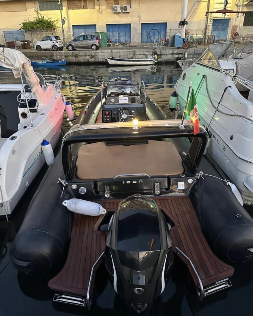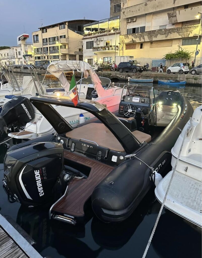 Gommone Icon 23s lunghezza 7,40mt motorizzato con Evinrude 150 cv con sole 30 ore moto. Motore anno 2020 (ancora in garanzia ufficiale), battello anno 2021. Perfetto sotto ogni punto di vista. Utilizzato davvero poco, soltanto 2 stagioni messo a mare. Manutenzione e rimessaggio regolarmente effettuati ogni anno. Dotato di tantissimi optional tra cui: rivestimento in teak vero trattato ogni anno, doppia spiaggetta di poppa con doppia scaletta di risalita a scomparsa, rollbar con prendisole in vetroresina, impianto stereo boss marine con 6 casse, gps, ecoscandaglio, conta ancora, frigo da 50 lt, verricello elettrico e tanto altro.
