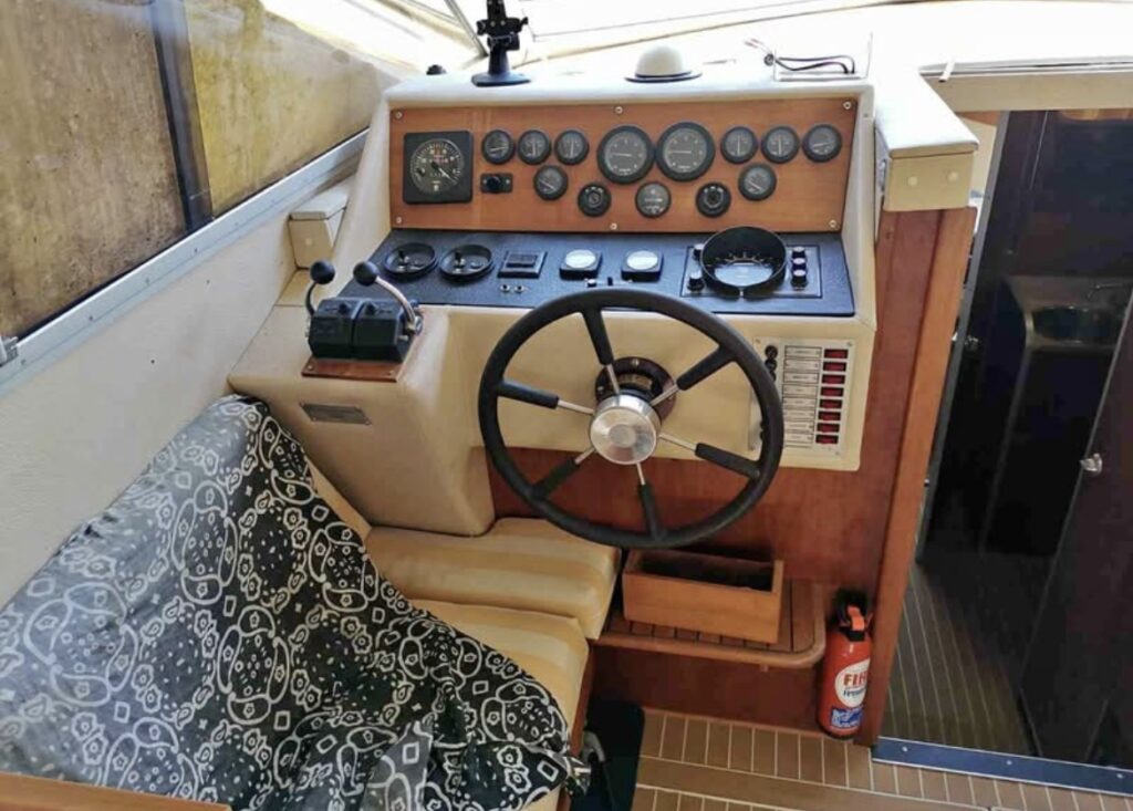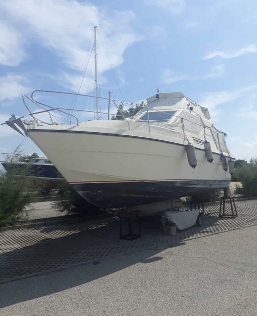 Imbarcazione 30 piedi fly, due motori benzina mercruiser 190 cv, manette elettroniche, interni buoni, cabina doppia a prua, letto singolo, cucina, bagno, necessita lavaggio approfondito esternamente, pulizia interni che sono in buone condizioni, lucidatura, ottima per imparare.