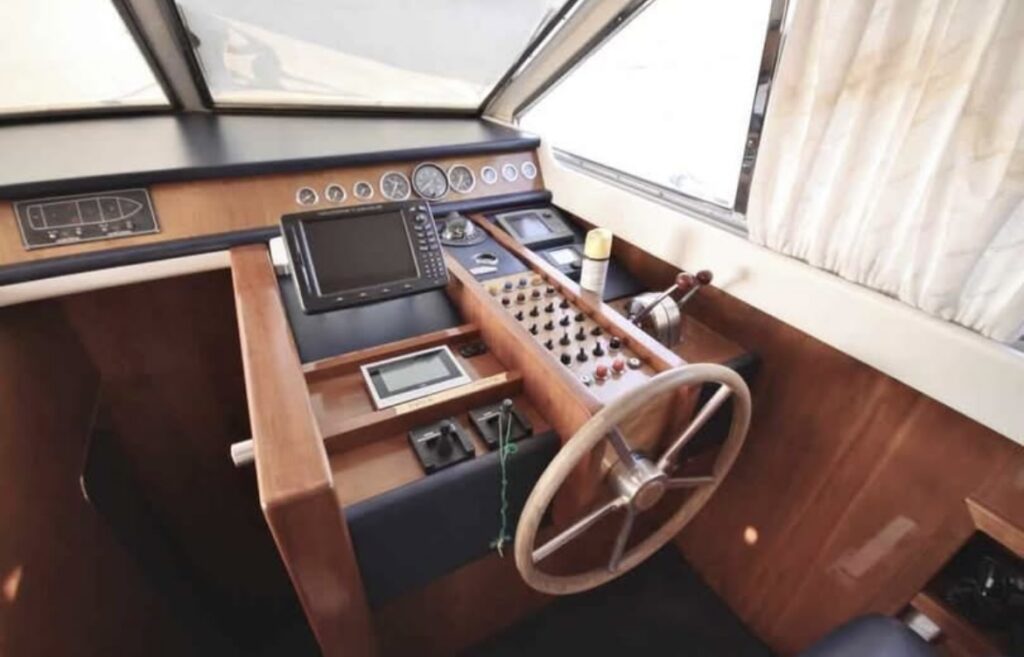 Otiima e spaziosa imbarcazione, 3 cabine e 3 bagni, scafo in legno, 2 x GM 735, interni perfetti, tappezzeria buona, generatore di corrente, clima, coperta e pozzetto in teak, barca di dimensioni generose ad prezzo interessante, necessita solo pulizia per il resto ottima
